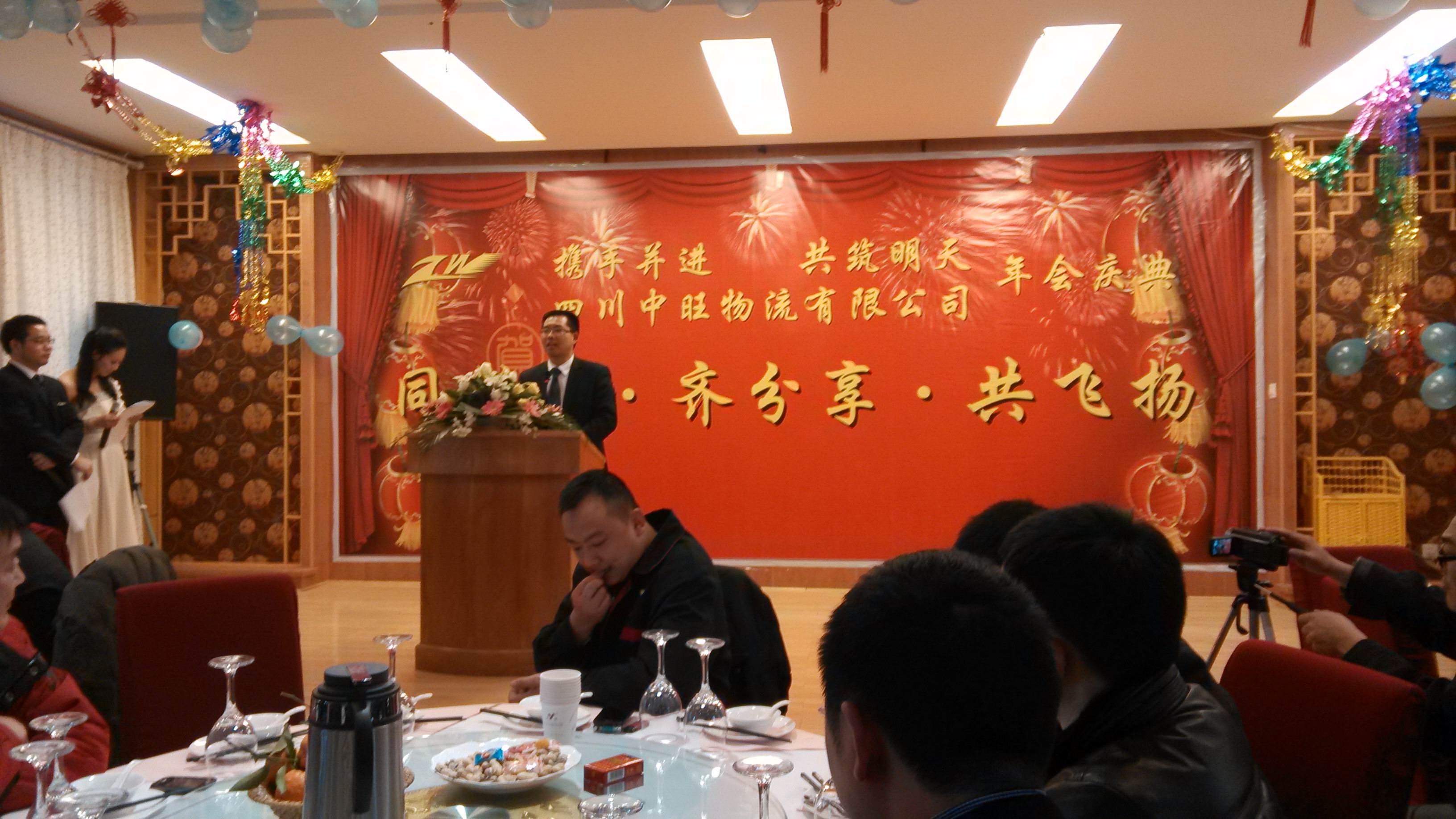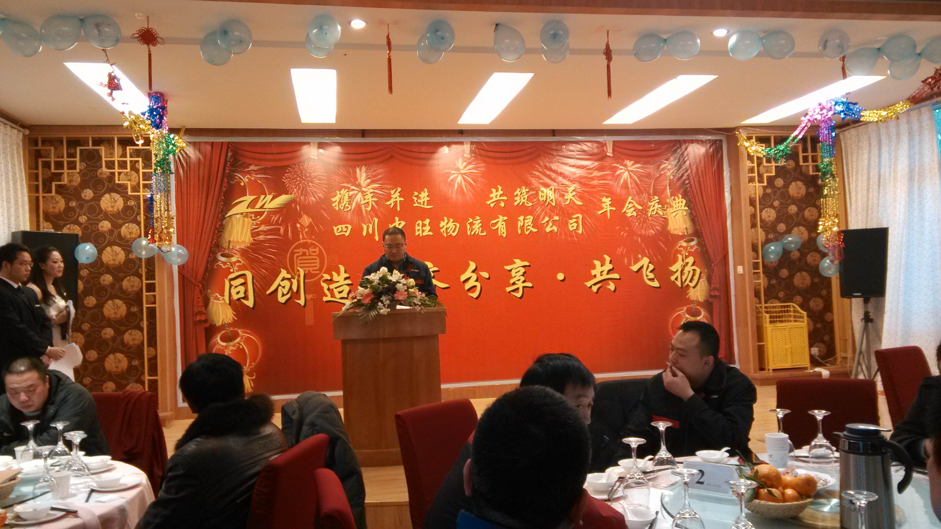四川中旺物流有限公司全体员工及合作三方公司领导于2013年1月20日16:30在正东大酒店举行2012年团拜会,共庆2013年新春的到来。 团拜会上,灯光璀璨,鼓乐声声。各部门踊跃参与表演节目,大家载歌载舞,欢声笑语,现场抽奖环节更是把晚宴的气氛推向了高潮。 晚宴席间大家互敬美酒,互致新春祝福,恭贺新年。年会在热烈、喜庆、祥和的气氛中圆满结束。